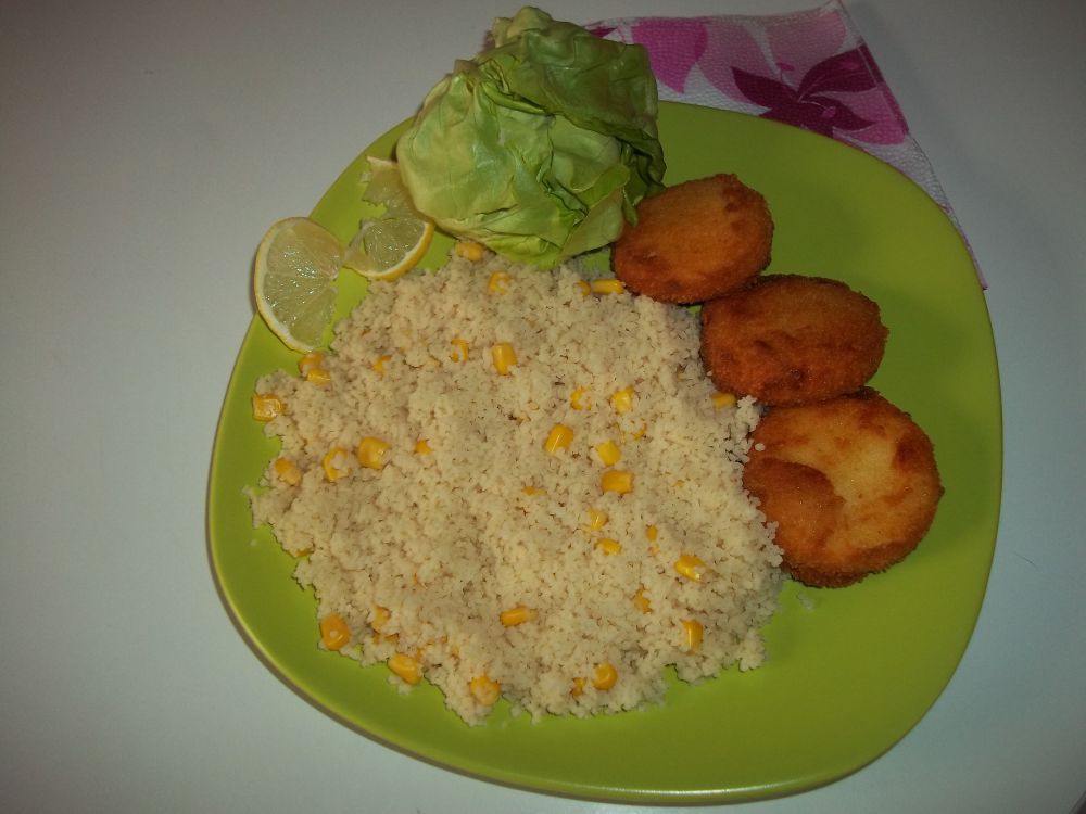 Rántott sajt, kuszkusz körettel. 4 személyre.